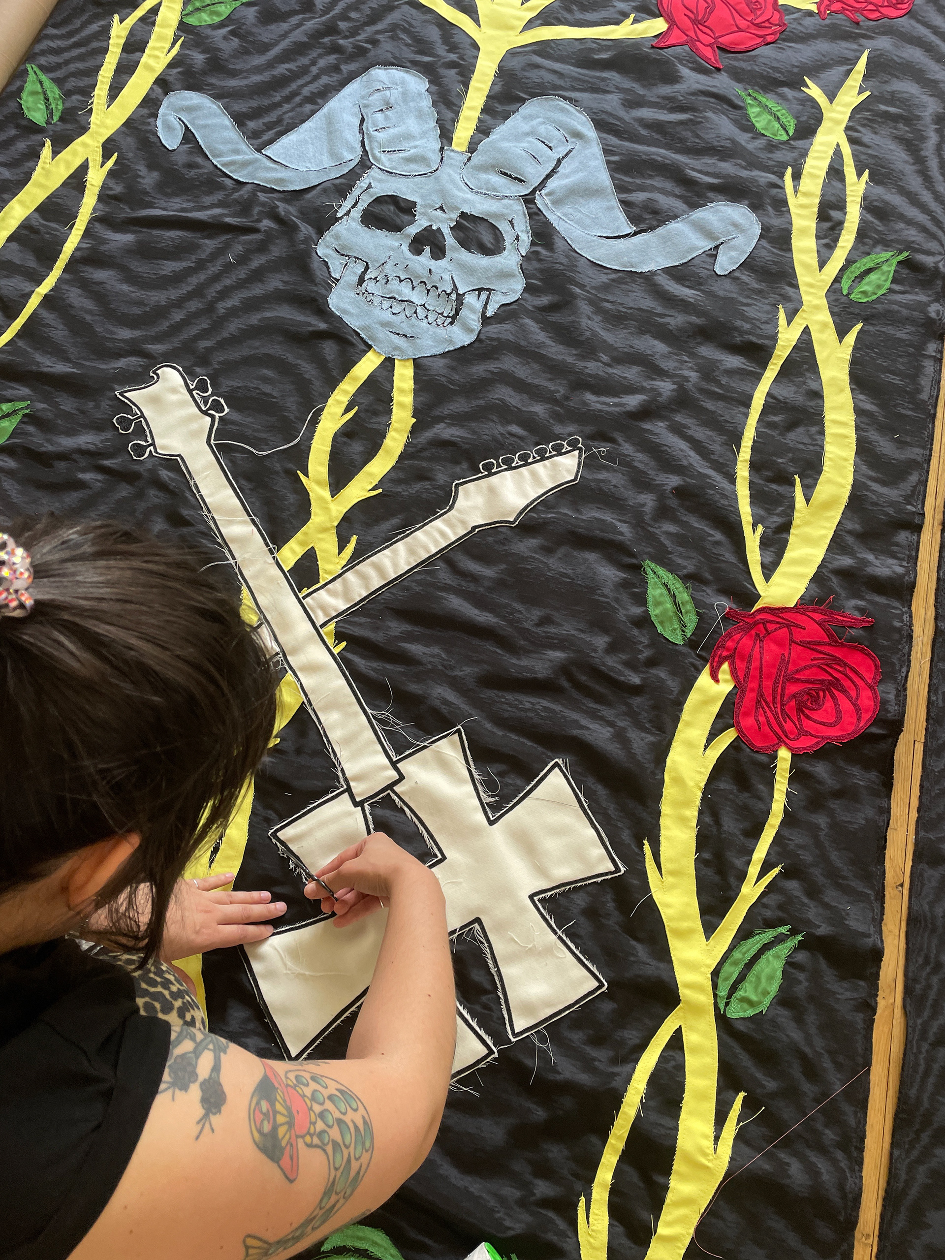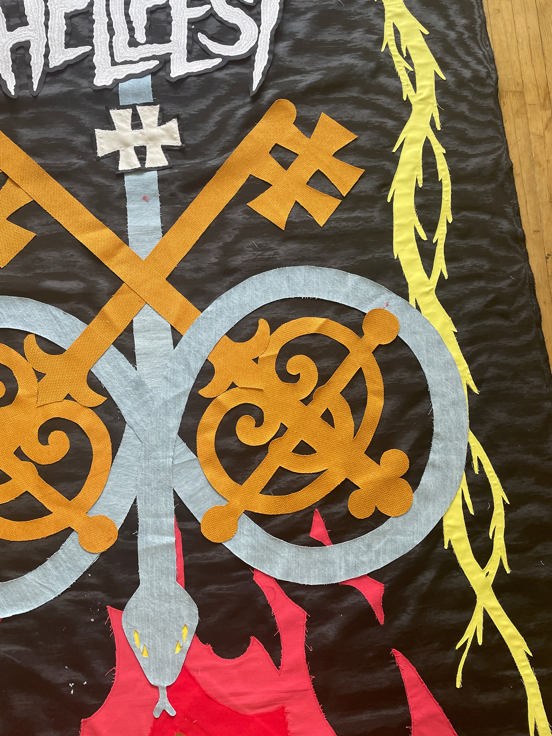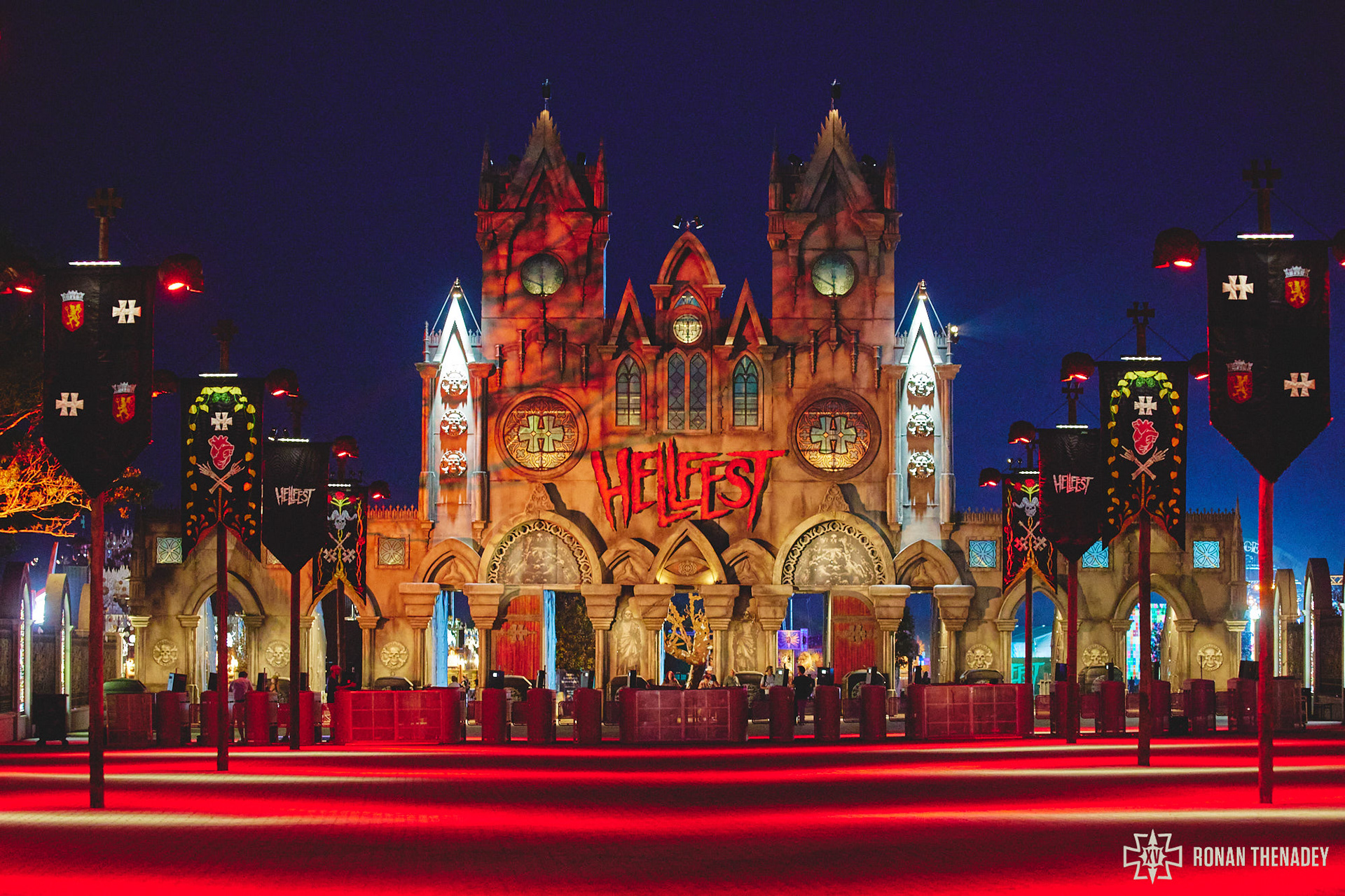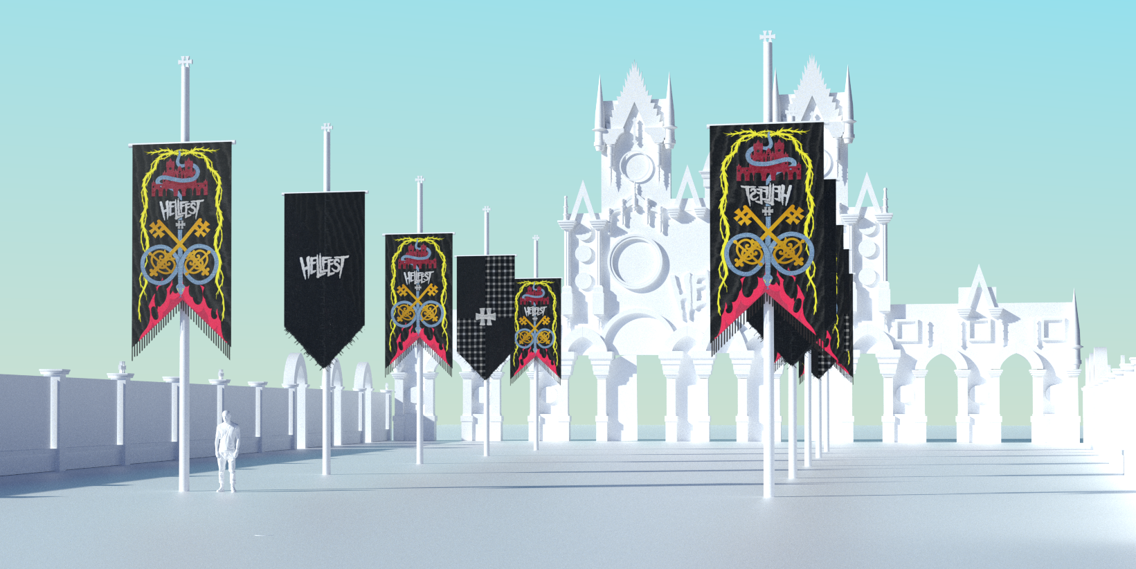 For Hellfest 2022 we created a collection of 10 banners on wooden poles with the help of many talented persons - Charlotte Tessier, Valentin Beauvineau, Valerie Mabile, Mirage Mirage, Clack and many others...